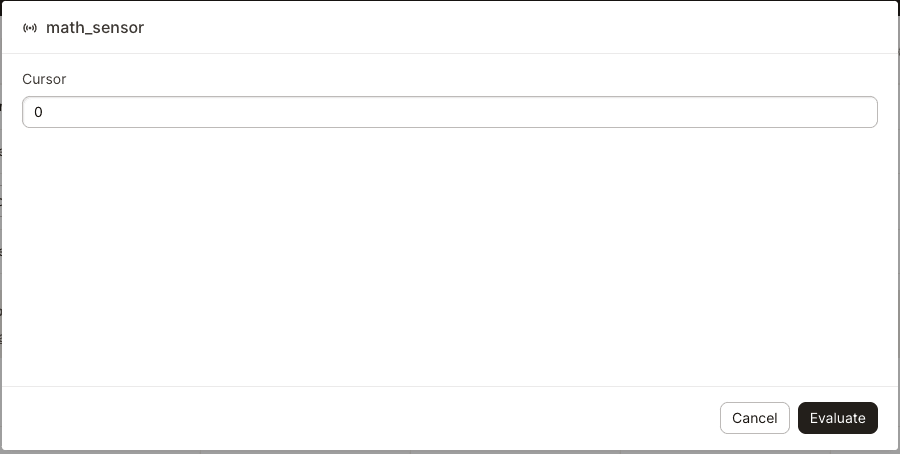 You'll be prompted to provide a cursor value. You can use the existing cursor for the sensor (which will be prepopulated) or enter a different value. If you're not using cursors, leave this field blank.